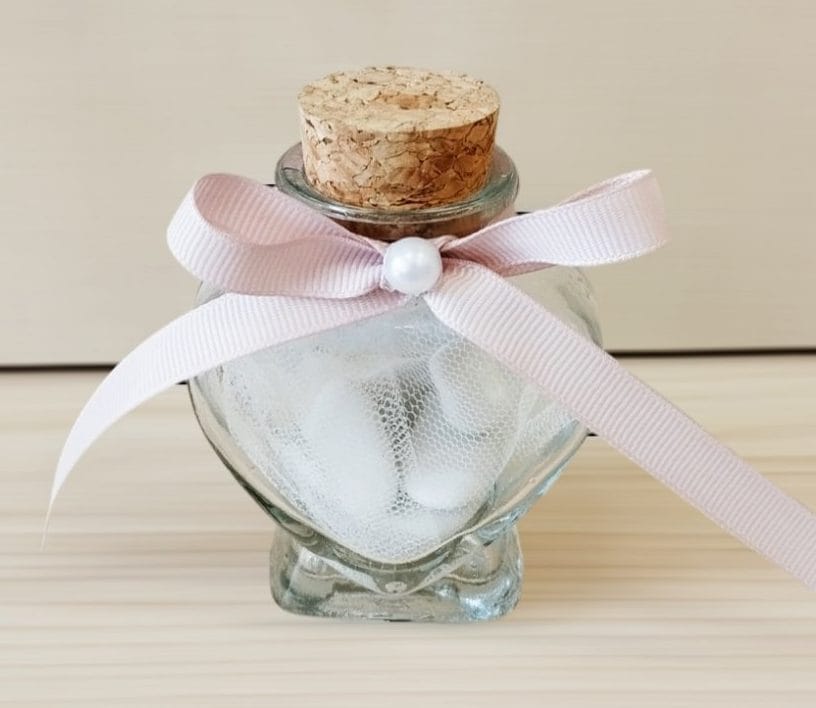 Μπομπονιέρα γάμου γυάλινο βαζάκι καρδιά SA23-06