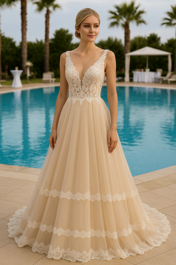 Αυτό το φόρεμα είναι ένα πραγματικό αριστούργημα που θα σας κάνει να νιώσετε ομορφότερες και μοναδικές την πολυαναμενόμενη ημέρα του γάμου σας.