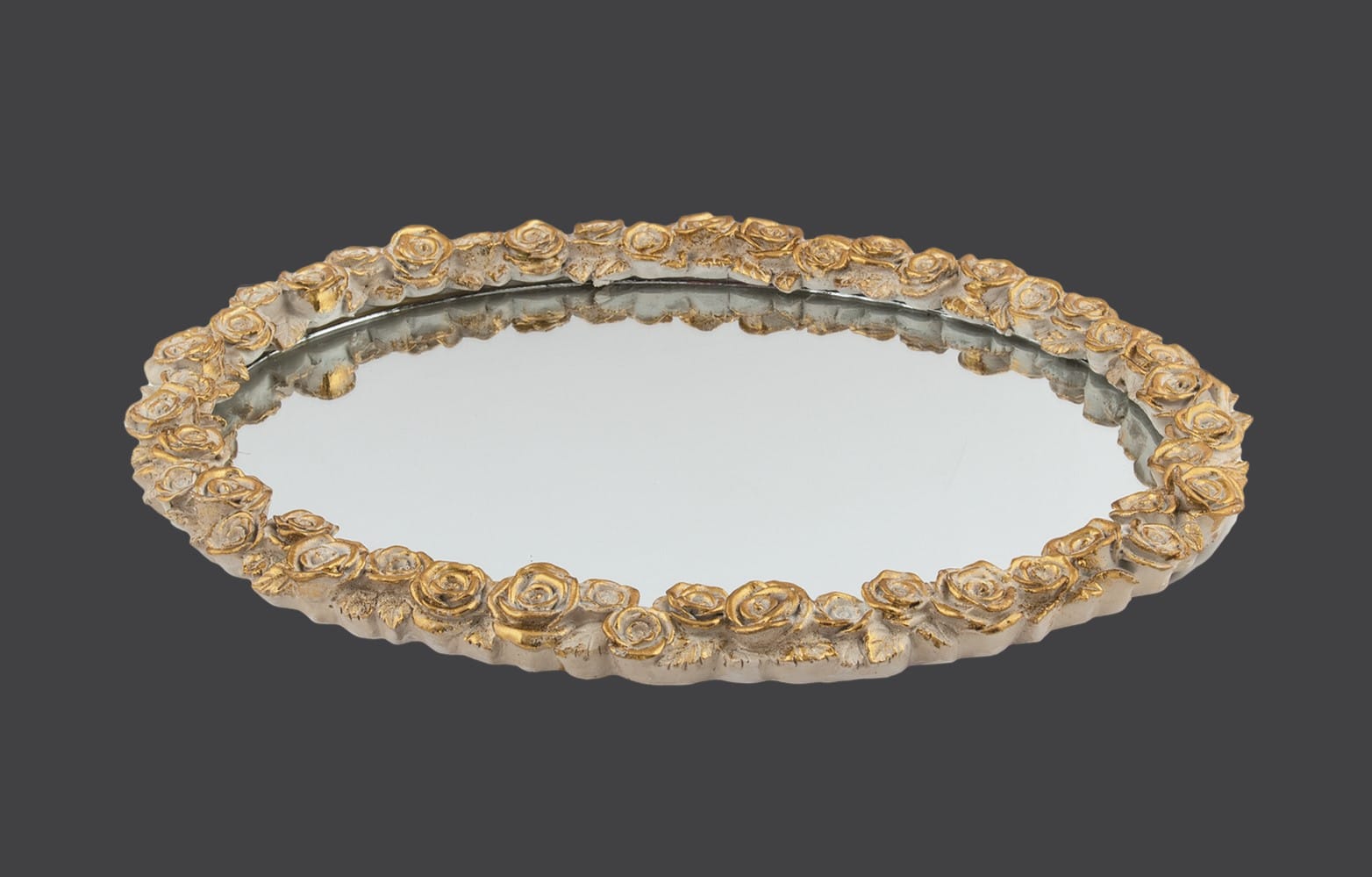 Ο δίσκος είναι οβάλ, διακοσμημένος με ανάγλυφα τριαντάφυλλα.