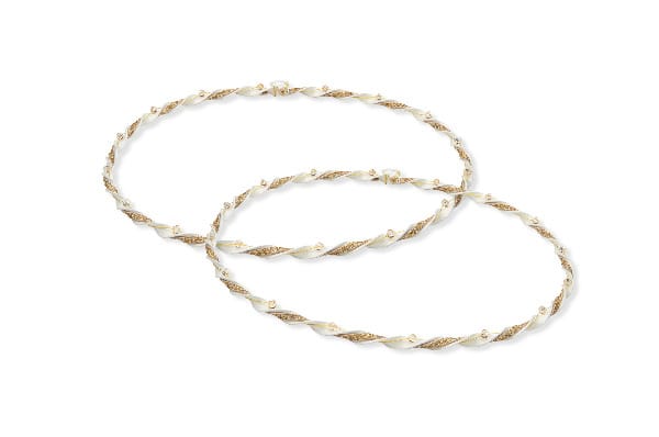 Στέφανα γάμου επάργυρα. Η βάση από τα στέφανα είναι λευκό σμάλτο και είναι πλεγμένα με χρυσό δέρμα & ivory κρυσταλλάκια.