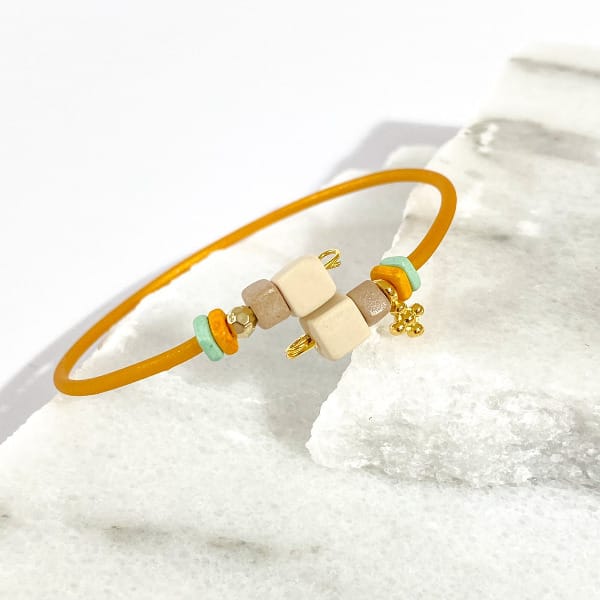 Μαρτυρικό επίχρυση χειροπέδα καουτσούκ με επίχρυσο σταυρό 24κ.