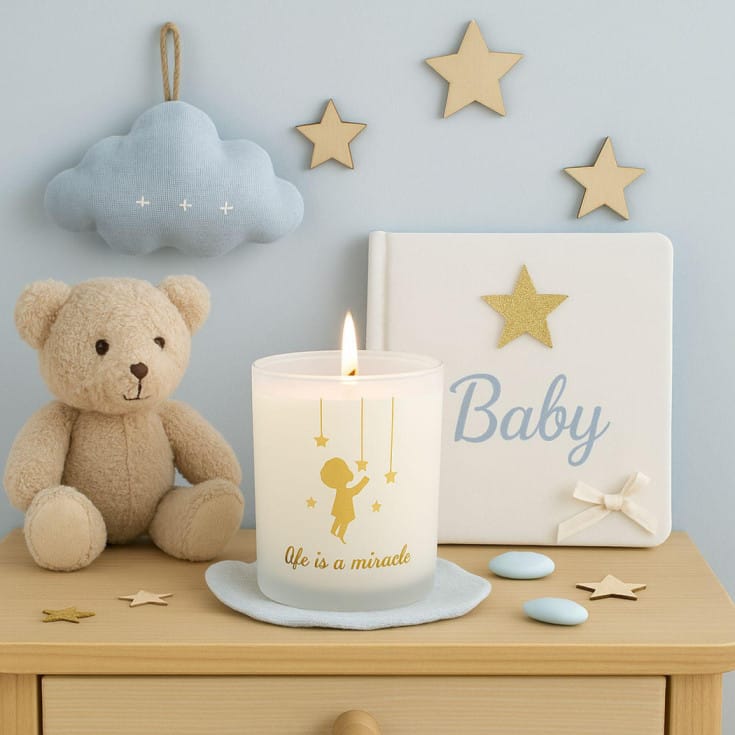 Ένα διακοσμητικό κερί που σκορπίζει φως και τρυφερότητα, διακοσμημένο με ένα γλυκό αγοράκι έτοιμο να ψιθυρίσει ευχές αγάπης σκορπίζοντας γύρω του την αίσθηση ενός ονείρου γεμάτου φως και ελπίδα.