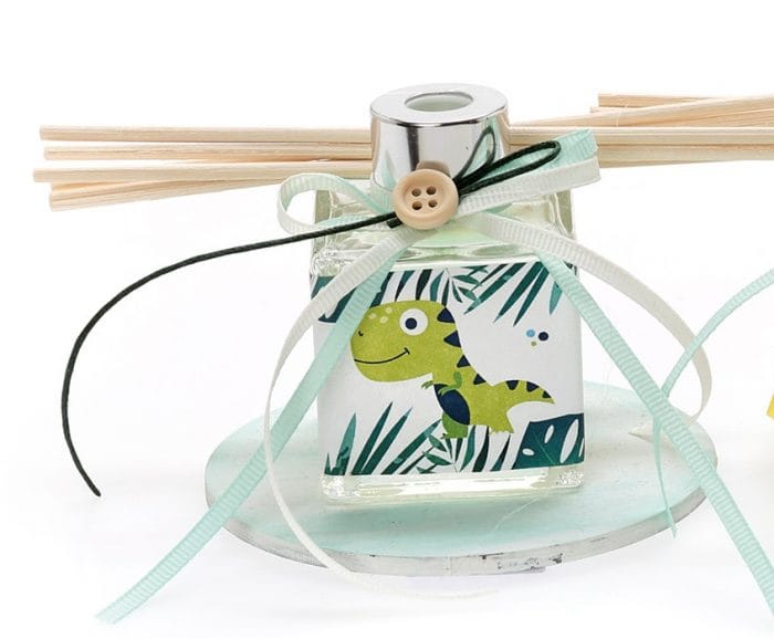 Μπομπονιέρα βάπτισης, αρωματικό χώρου σε ξύλινη βάση με θέμα τον δεινόσαυρο. BEL21-APB320