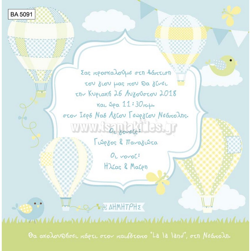 Προσκλητήριο Βάπτισης με θέμα Αερόστατο ΒΑ-5091