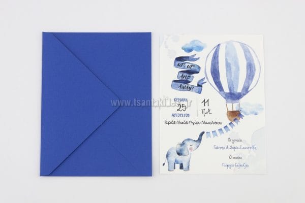 Προσκλητήριο Βάπτισης με θέμα αερόστατο-ελεφαντάκι 1745 – No91K