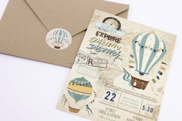 Προσκλητήριο Βάπτισης με θέμα αερόστατο 1756 – No91K
