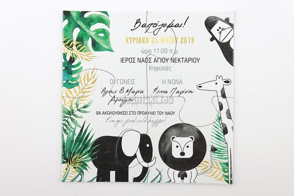 Προσκλητήριο παζλ με θέμα ζωάκια της ζούγκλας 002-02