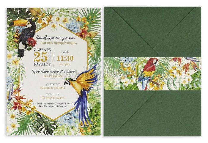 Προσκλητήριο Βάπτισης με θέμα Tropical 1777 No91Κ