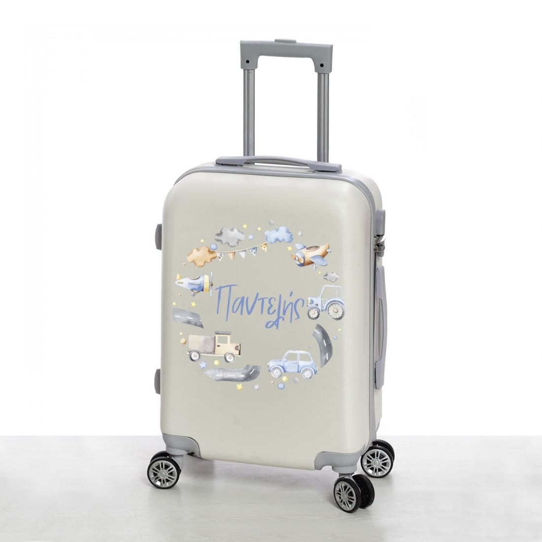 Βαλίτσα εκτυπωμένη σε χρώμα off white με θέμα οχήματα ΔΣ-322