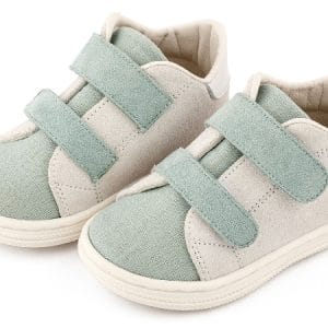 Δίχρωμο σνίκερ από δέρμα και ύφασμα με διπλή μπαρέτα χρατς,