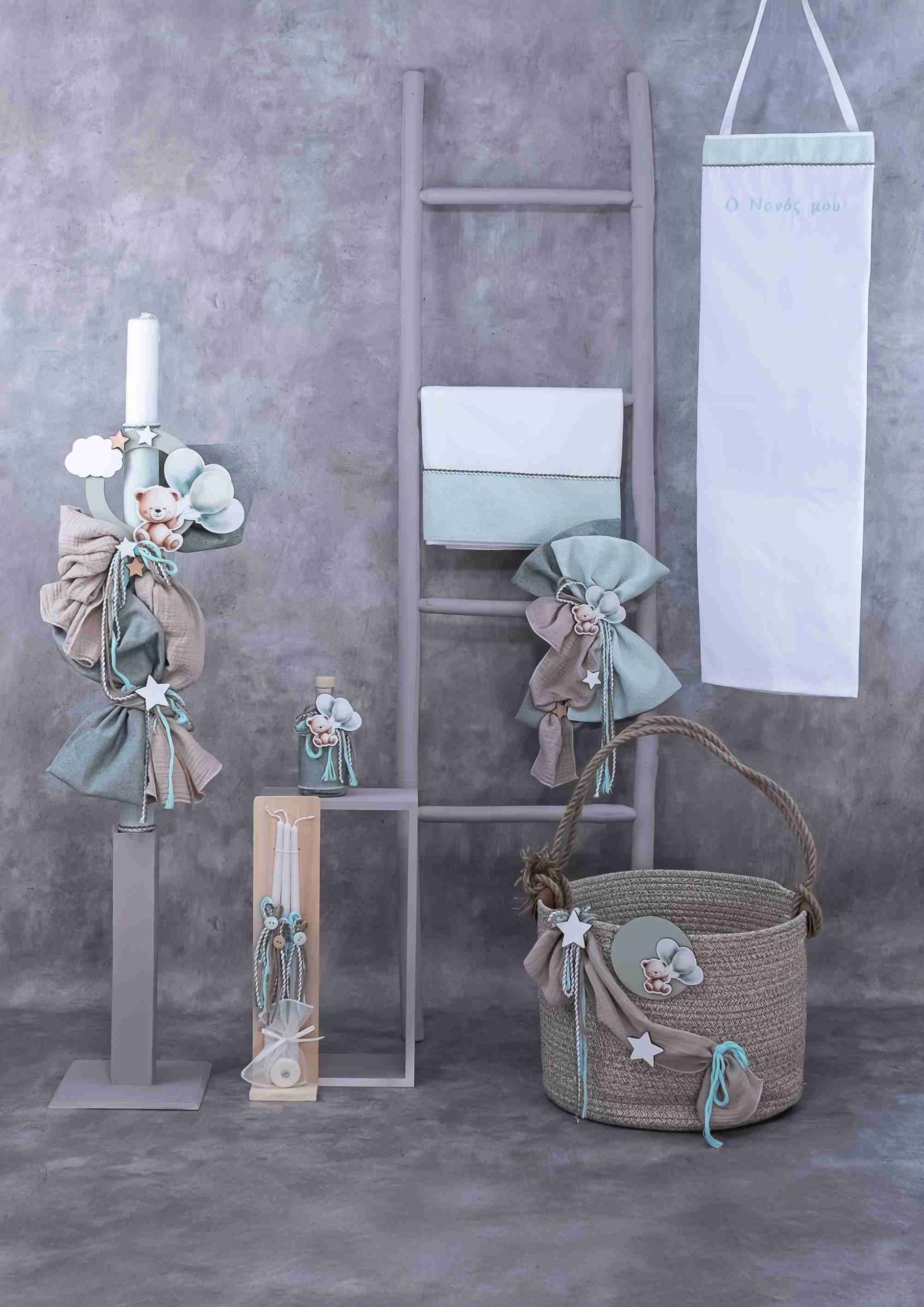 Σετ βάπτισης για αγόρι με θέμα Αρκουδάκι-Μπαλόνια L-E705