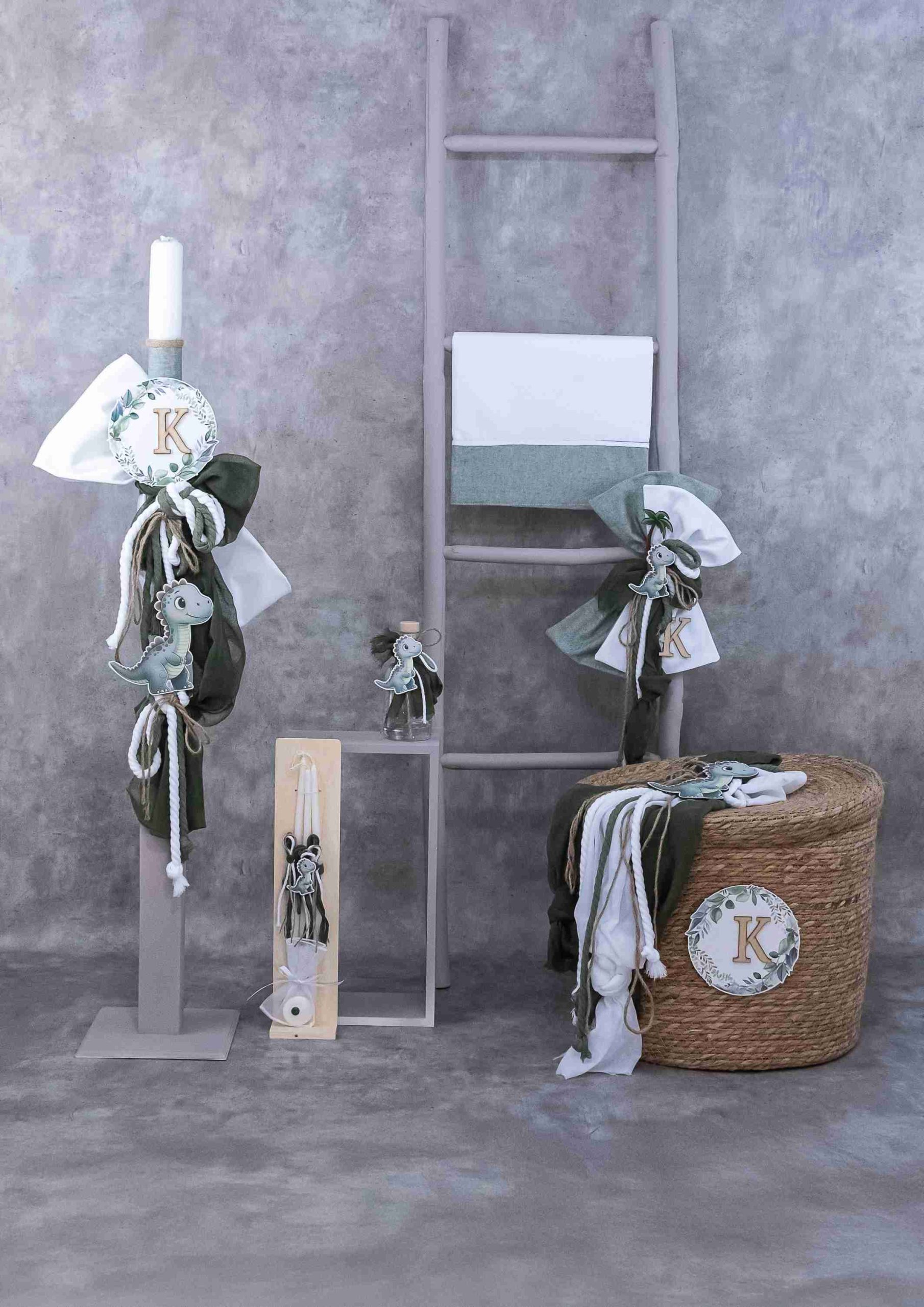 Σετ βάπτισης για αγόρι με θέμα Δεινοσαυράκι-Μονόγραμμα L-E704