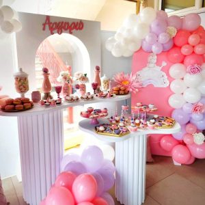 Στολισμός & Candy bar βάπτισης με θέμα το ουράνιο τόξο