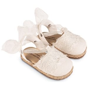 Υφασμάτινη εσπαντρίγια με λεπτομέρεια δαντέλας και δέσιμο απο κορδέλα οργάντζας,