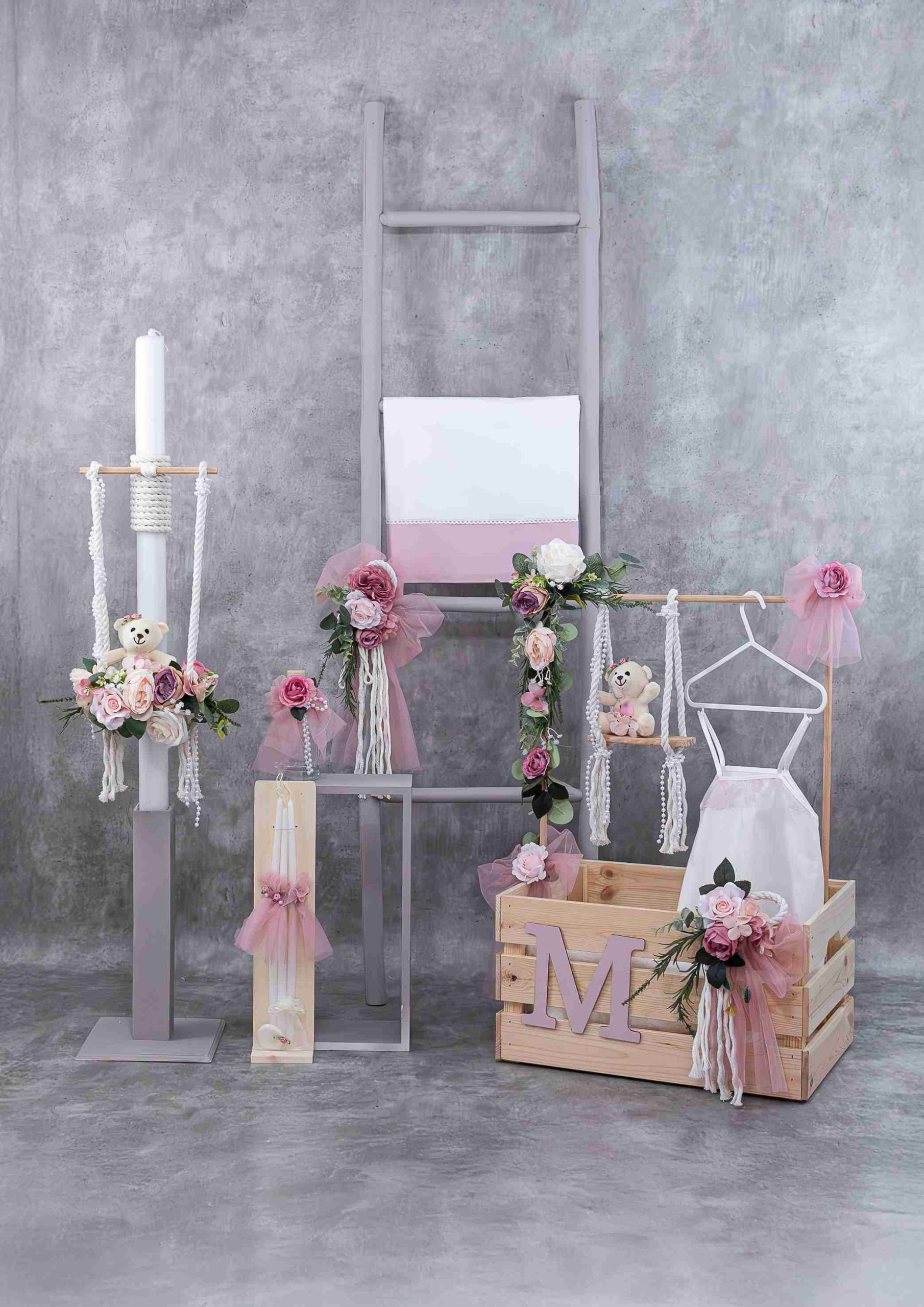 Σετ βάπτισης για κορίτσι με θέμα Αρκούδακι-Λουλούδια L-E731