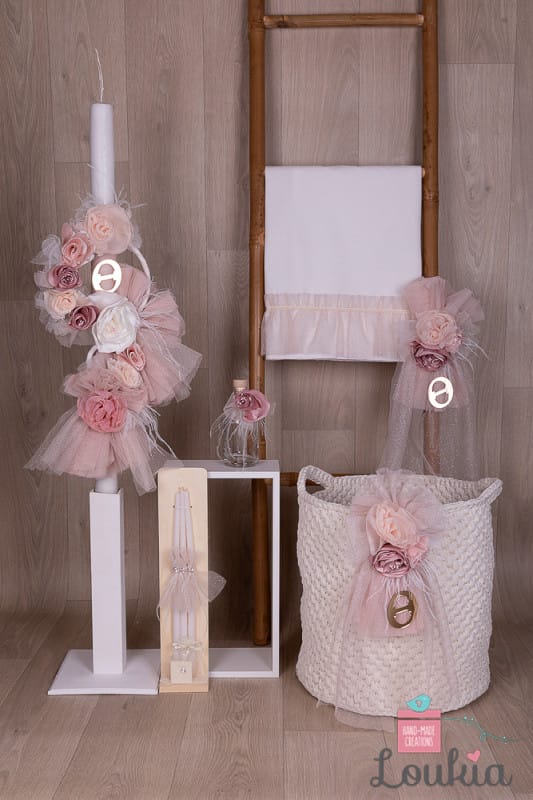 Σετ βάπτισης για κορίτσι με θέμα Λουλούδια και Mονόγραμμα  L-E622